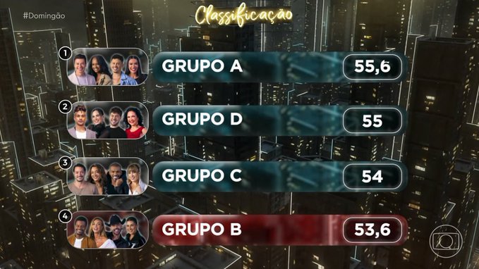 Classificação dos grupos na primeira dança em grupo #DançaDosFamosos